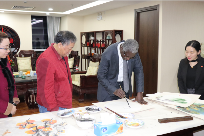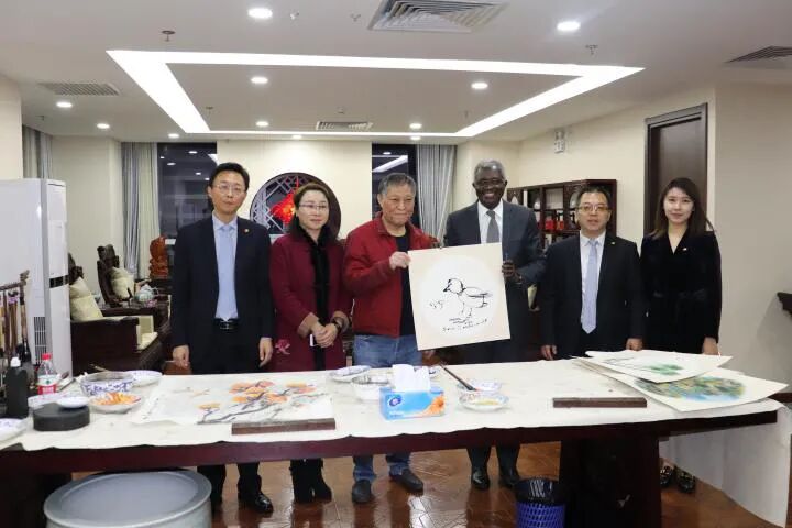 活动的最后,中国著名印象派画家高陆甲先生、中国美术家协会会员范凤清女士应邀请在活动现场挥毫泼墨。两位德高望重的艺术家创作了一系列代表中非人民友谊长存的书画作品,主题吉祥,意蕴悠长。贝宁大使等人饶有兴致地观看了整个创作过程,被中国传统书画的魅力深深吸引,并现场即兴创作了一幅中国画。参会人员在浓厚的艺术氛围中自由交流,畅所欲言,活动气氛被推向高潮。