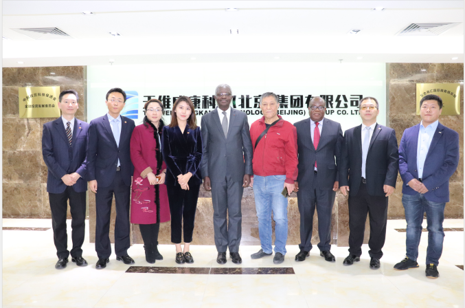 2020年12月11日,应天维盛康集团的热情邀请,贝宁共和国驻华大使西蒙・阿多韦兰德先生 (H.E. Mr. Simon P. Adovelande) 、贝宁共和国驻华参赞吕克・艾巴先生(Luc EBAH)等一行四人莅临集团公司,出席由天维盛康集团与贝宁驻华大使馆联合举办的“贝宁共和国文化贸易交流会”活动。天维盛康集团副总裁侯路怡女士、胡建民先生,北京万合商汇企业服务有限公司总经理张智先生等领导热情接待了大使并参与了相关活动。同时,山东博兴万利达厨业有限公司、北京星禹心愿文化传媒公司、湖南星视直播、北京中海建国酒业有限公司、北京市东城区工商联青创会、北京市东城区新联会社会服务专业委员会等企业和机构的领导代表也出席了本次活动。与会方就经贸合作、文化交流等方面进行了亲切的交流会谈。